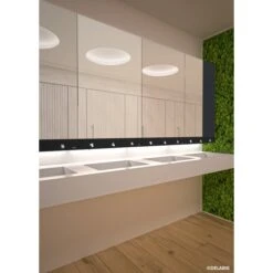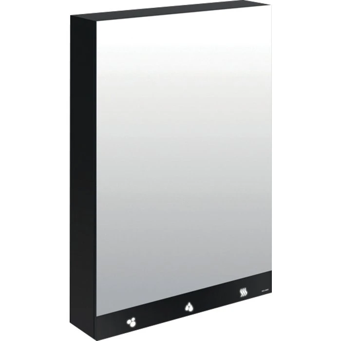 Armoire miroir 4 fonctions : miroir, distributeur de savon et robinet automatiques et sèche-mains électrique.