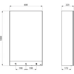 le haut ou à l’intérieur de l’armoire. Raccordement eau en M3/8″. Fixations invisibles. Armoire miroir livrée avec vis inox pour mur béton ou renfort bois. Charnières réglables.