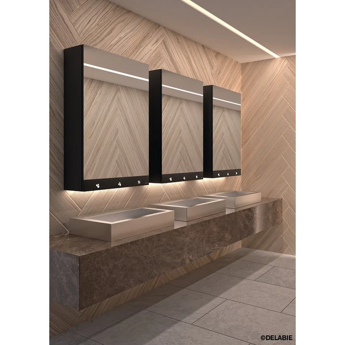 Éclairage de la vasque par bandeaux LED. Modèle anti-vandalisme avec serrure et clé standard DELABIE.