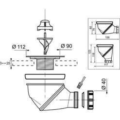 Pour receveurs standards en grès ou matériaux de synthèse, épaisseur comprise entre 0 et 25 mm pour orifice Ø 60 mm et 3 à 25 mm pour orifice Ø 90 mm