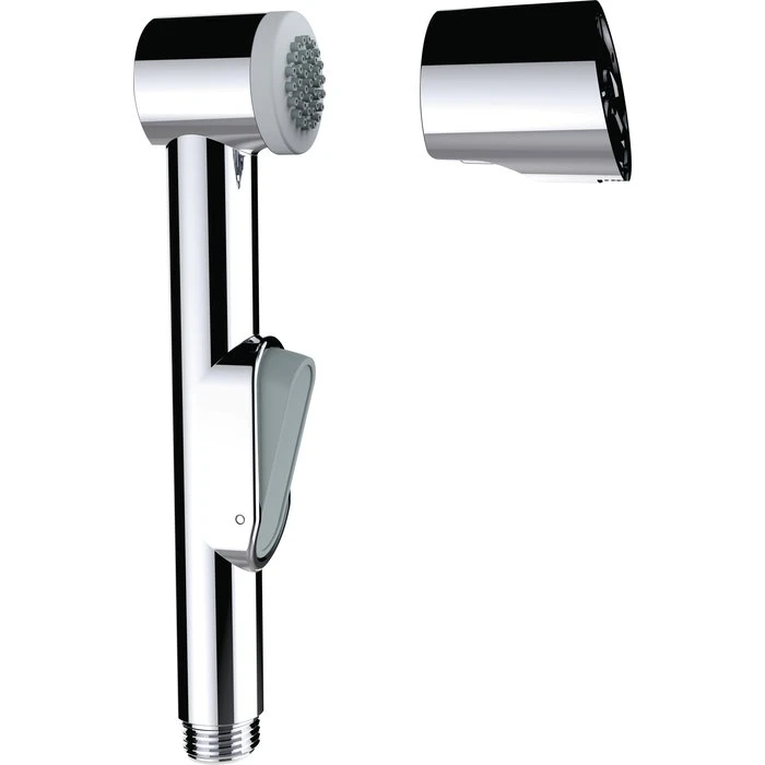 La douchette chromée dispose d’un jet avec une gâchette d’arrêt sur l’avant. Un support fixe à installer sur le mur de votre pièce est fourni avec la douchette.
