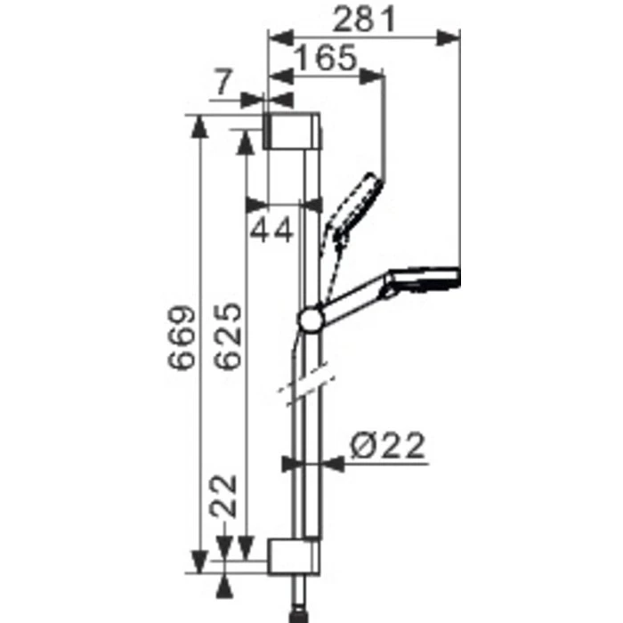 Barre de douche Unica’Croma 650 mm, Ø 22 mm