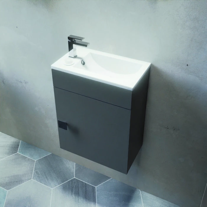 Ensemble lave-main et miroir adapté pour les petits espaces en mélaminé.