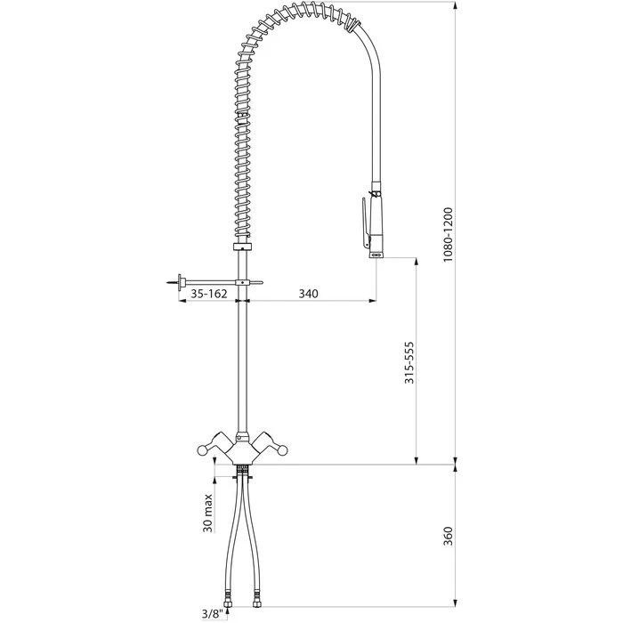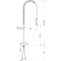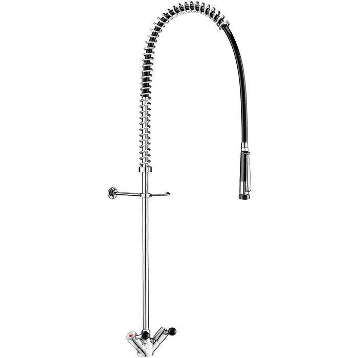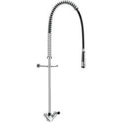Composition : – colonne 3/4″ en laiton – collier mural réglable – ressort guide en inox – flexible armé noir, long. 0,95 m – douchette à jet réglable avec débit de 9 l/min en sortie |