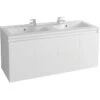 Ensemble meuble de salle de bain avec pieds. Plan en céramique avec miroir décor et spot led.