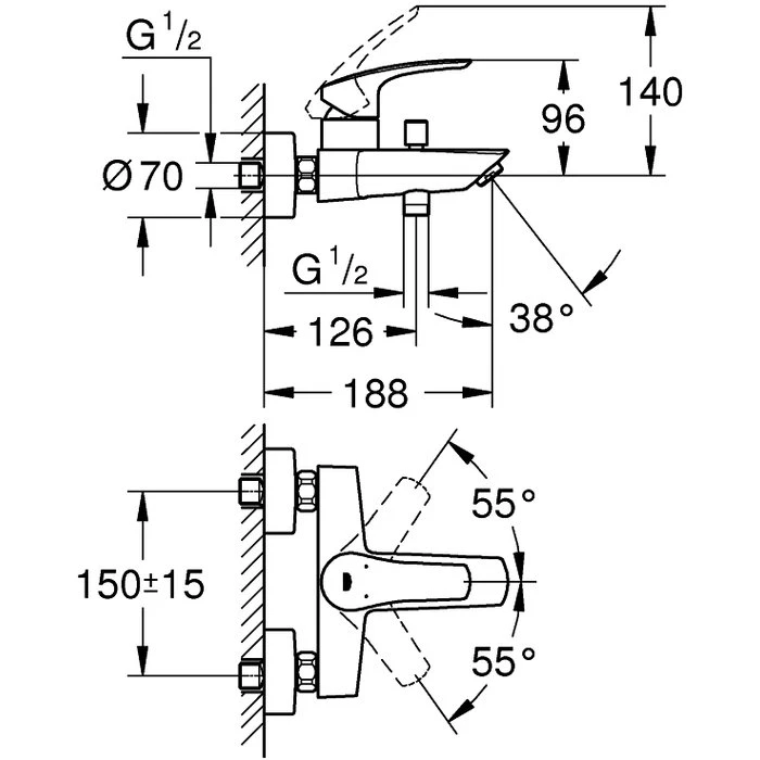 Mitigeur de douche eurosmart GROHE avec limiteur de température et