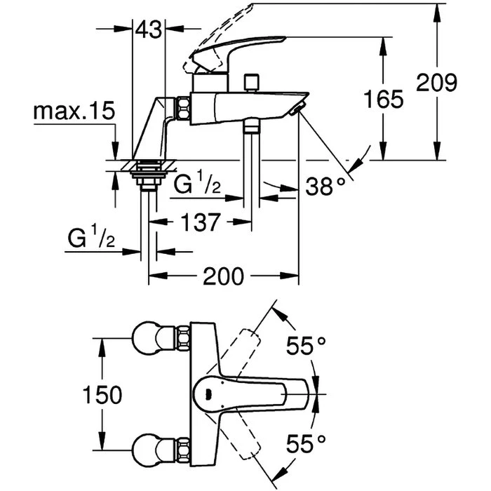 Mitigeur bain / douche Grohe avec limiteur de température, clapet anti-reoutr et raccords colonnettes.Â