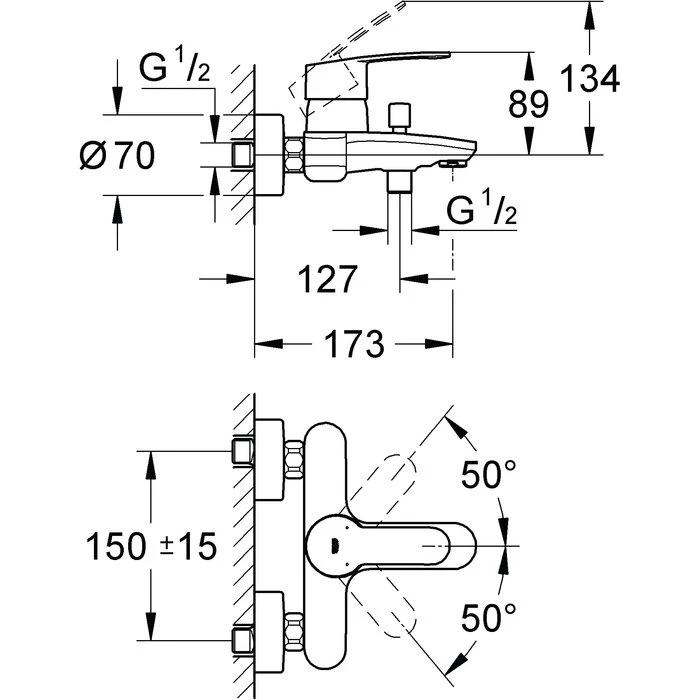 Clapet anti-retour intégré dans le départ de douche 1/2″