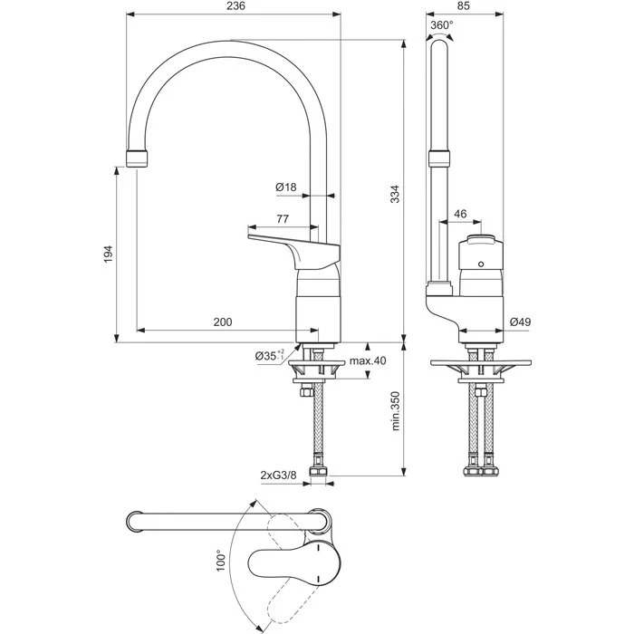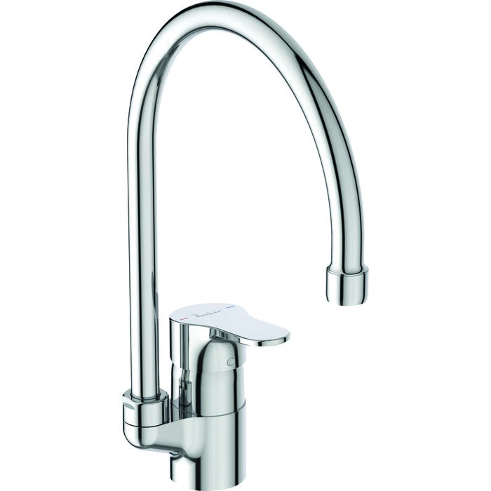 Le mitigeur cuisine Olyos possède un limiteur de température intégré et un limiteur de débit 50% déverrouillable. Les flexibles sont anti-torsion PEX 3/8″ – 350 mm.