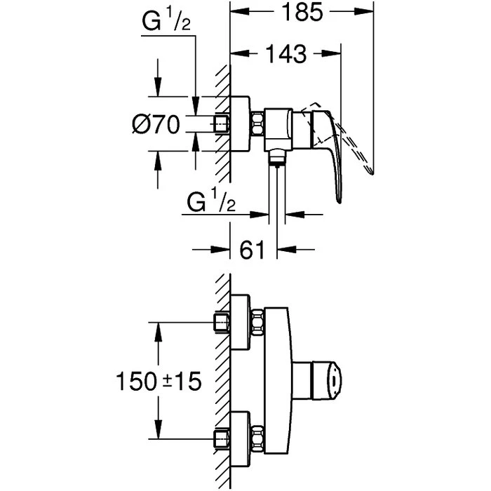 Mitigeur de douche eurosmart GROHE avec limiteur de température et clapet anti-retour intégré. Nous retrouvons à l’intérieur la technologie du groupe GROHE, avec la cartouche céramique GROHE SilikMove avec butée éco 1/2 débit, et GROHE StarLight qui vous permettra de garder un chrome éclatant et durable.