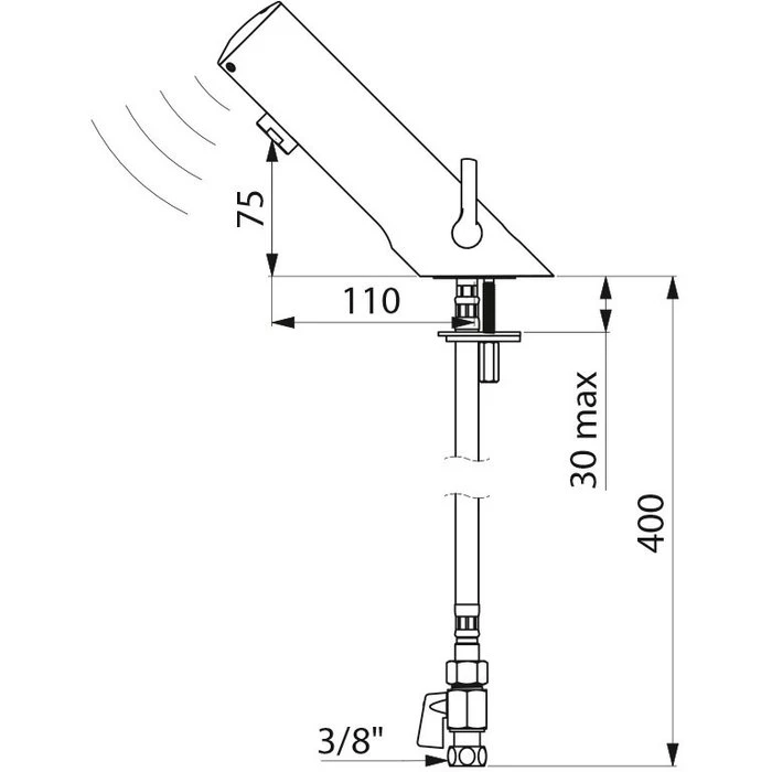 Détecteur caché en bout de bec, optimisant la détection des mains dans toutes les positions