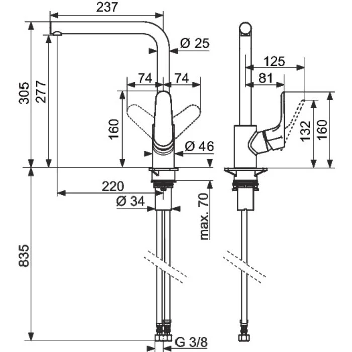 Bec mobile en L (110°, 150° ou 360°)