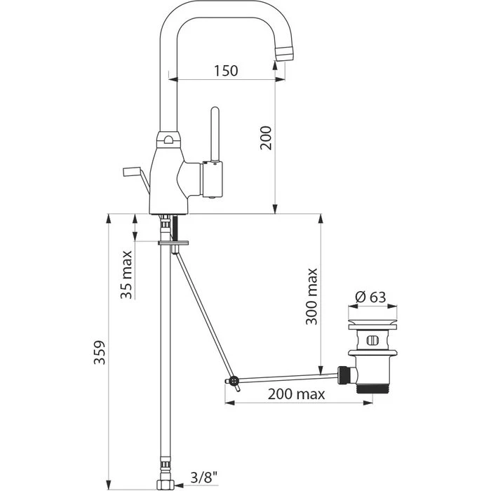 Bec tube orientable Ø 22 H. 200 L. 150