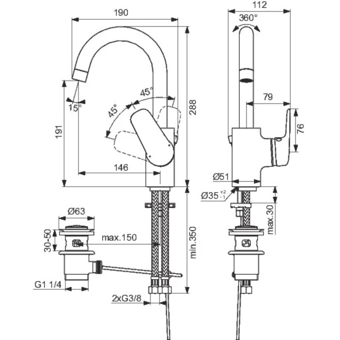Flexibles d’alimentation PEX 3/8″ 350 mm