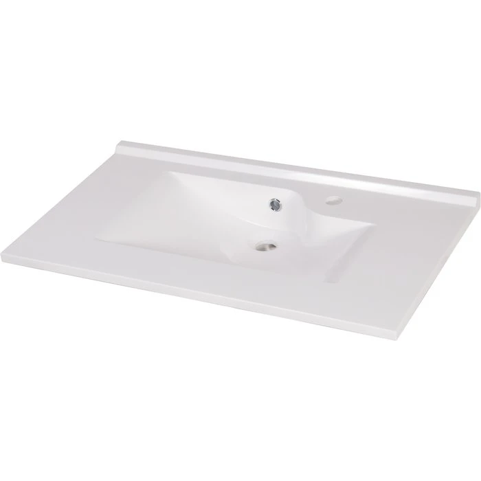Plan vasque moulé à poser, blanc en résine (marbre de synthèse + gel coat)
