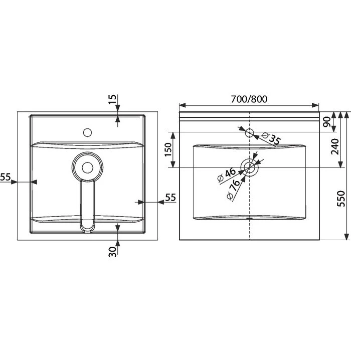 Plan Vasque – Résiplan – Creazur – L. 700 Mm