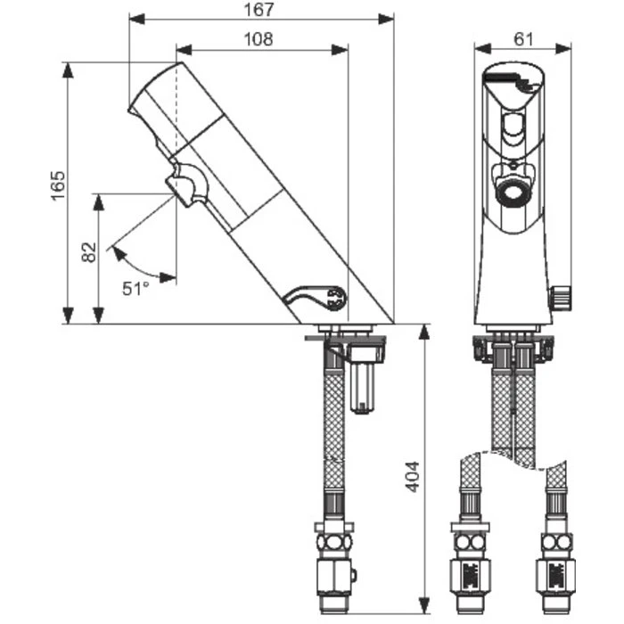 Limitation de la température maximale par butée, avec flexibles PEX et robinets d’arrêt filtres