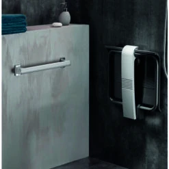 Sa hauteur normalisée est de 50 cm, la visserie est fournie et les fixations sont invisibles. Le design de ce produit est coordonné aux barres de douche Arsis, et il est parfaitement adapté pour l’hôtellerie.Â