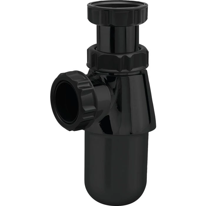Siphon pour vasque et lavabo en ABS noir Encombrement sous lavabo : 138 à 208 mm