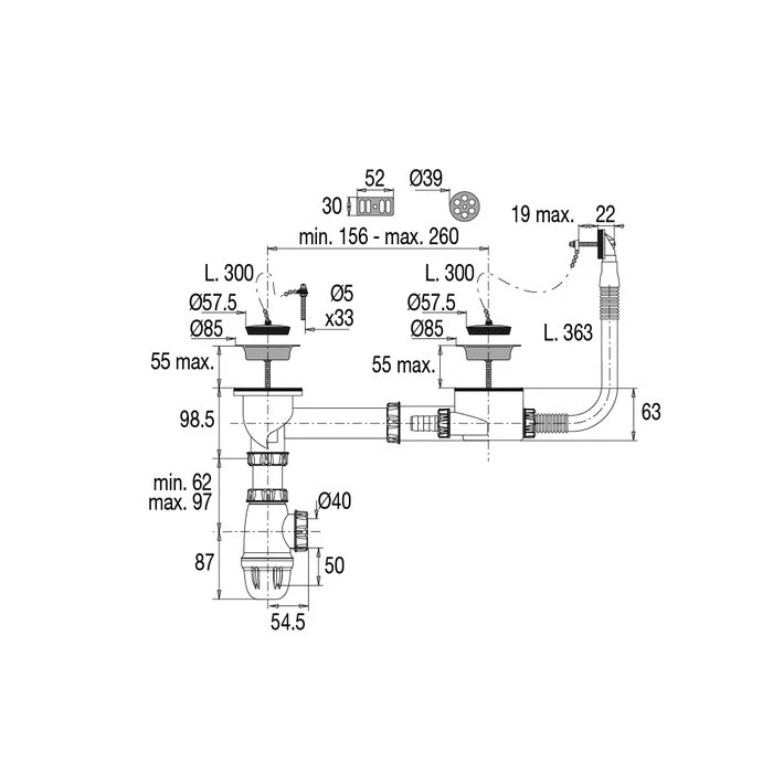 Trop plein Diamètre plateau : 60 mm |